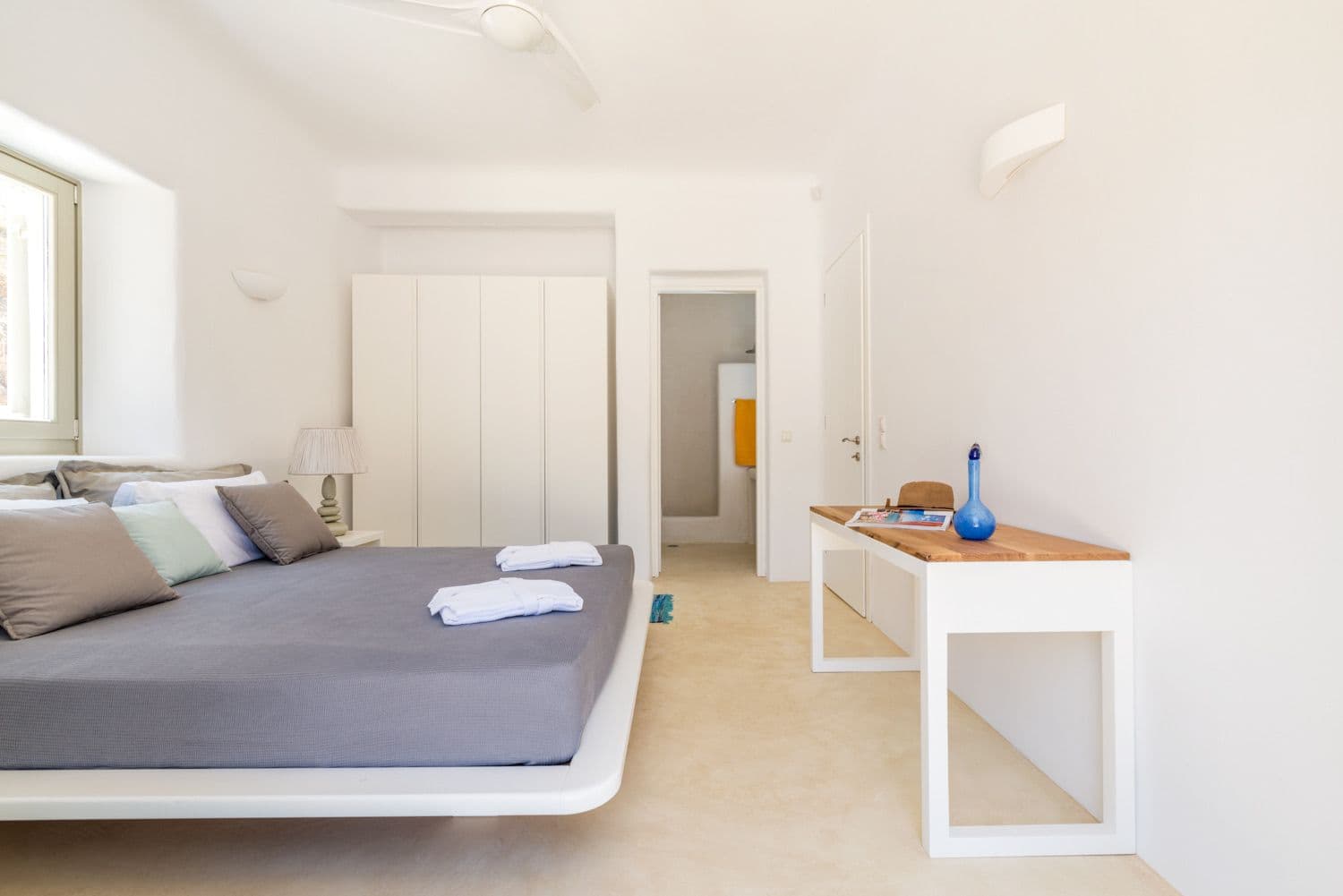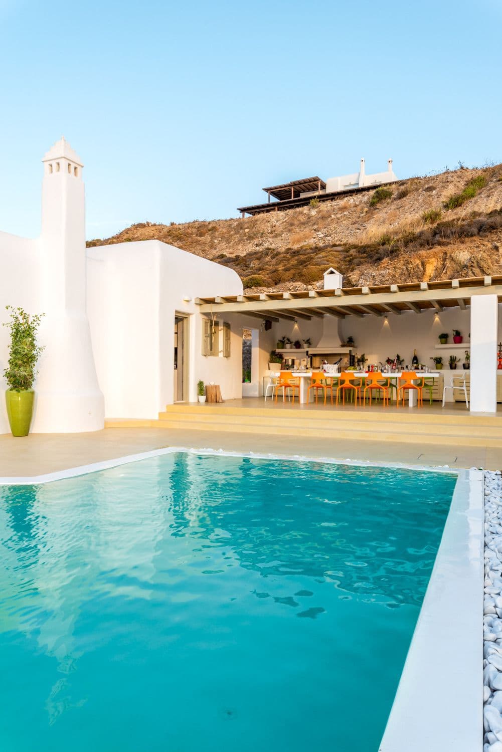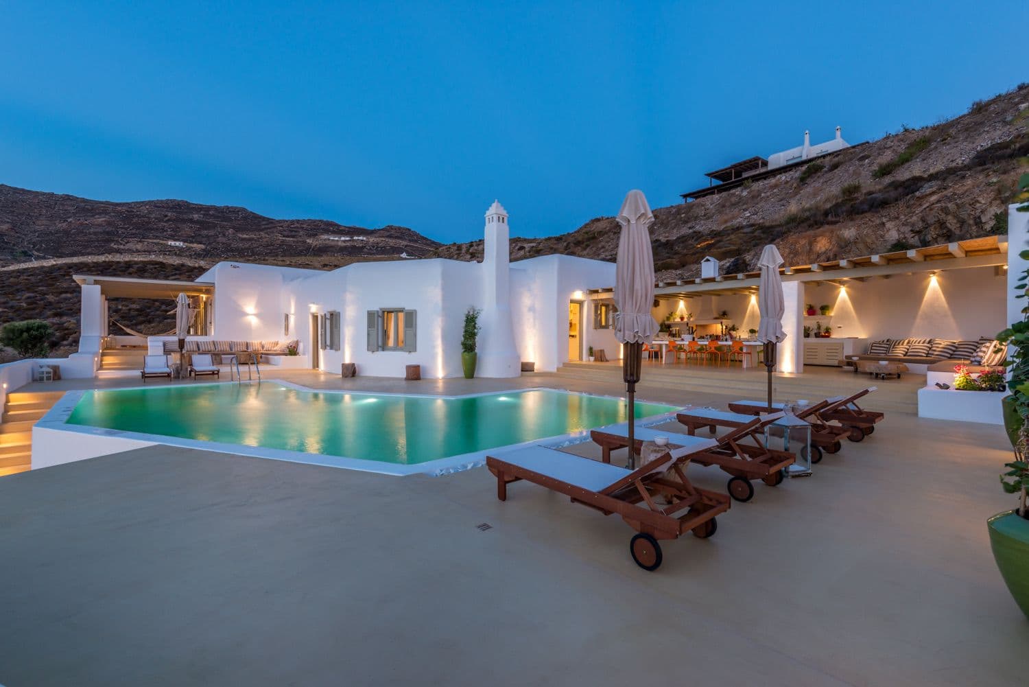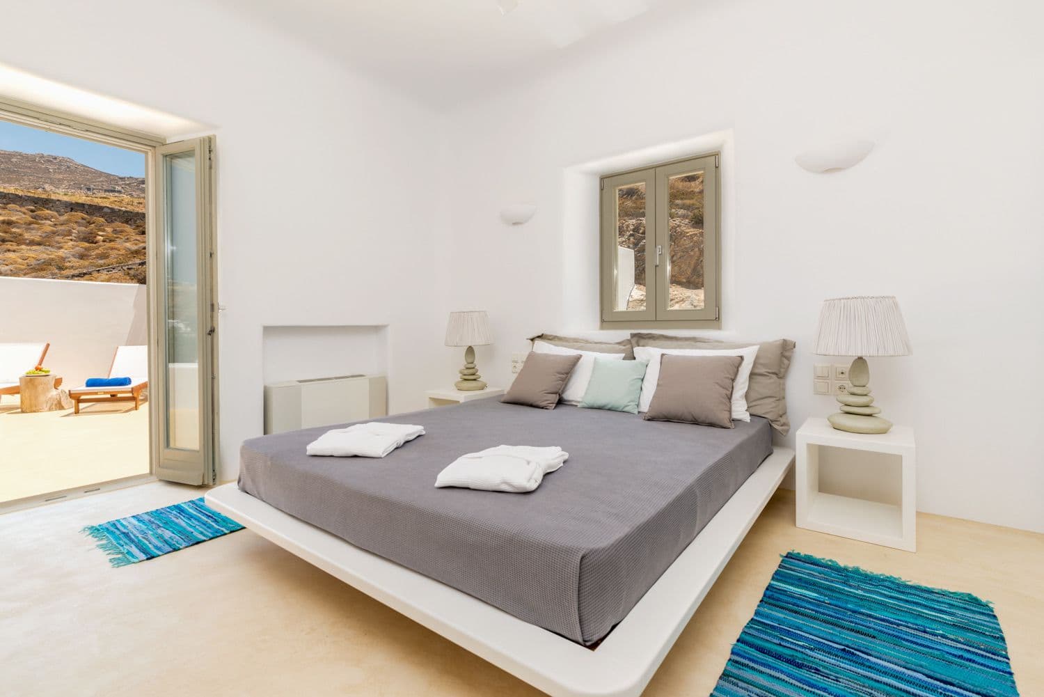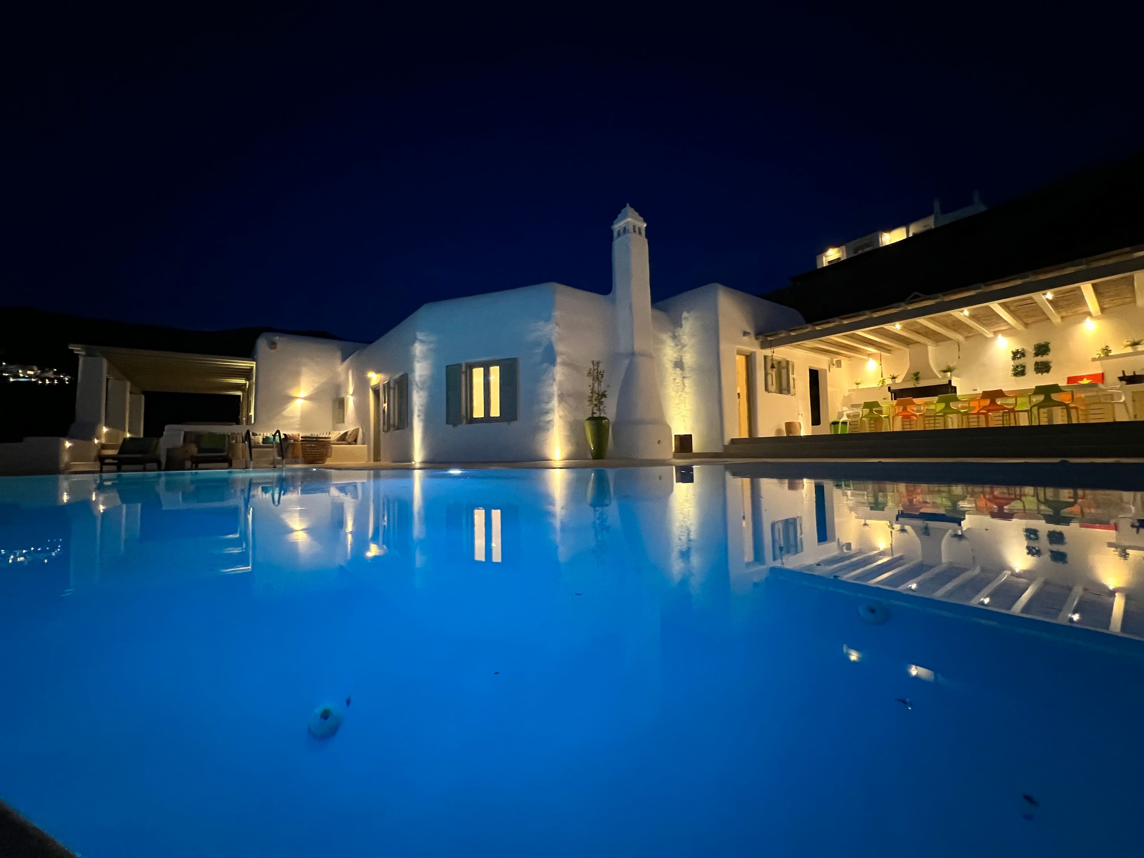At the distance of of 6 km from city center, 2 km from the picturesque village of Ano Mera, 500m from Ftelia beach and the famous beach bars Alemagou and Pascha. -Swimming pool -Helipad -Sea view -Fireplace -2 barbeque areas -Fully equipped kitchen